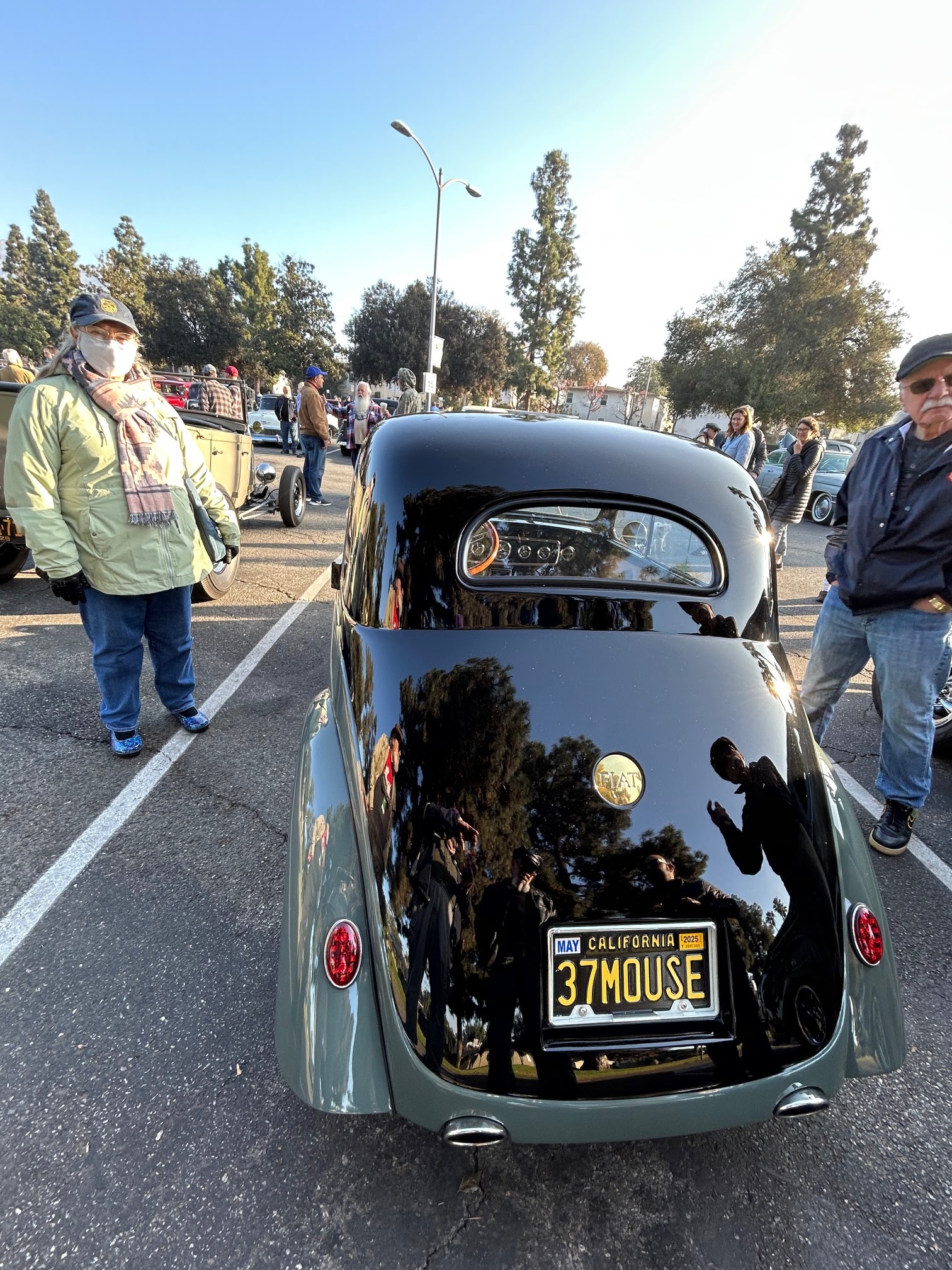 First up was the Horseless Carriage Drive. This brings out some of the most beautiful Auld Stuff out of their heated garages and into the Public Eye and it's FREE! It all starts at Santa Anita Park in Arcadia, and winds its way through Altadena and Pasadena. Some of the route is a bit tricky, and up in Altadena, they needed the help of my buddy, retired PPD cop Tom. He dusted off his traffic directing skills and got them on the right path. Mostly.